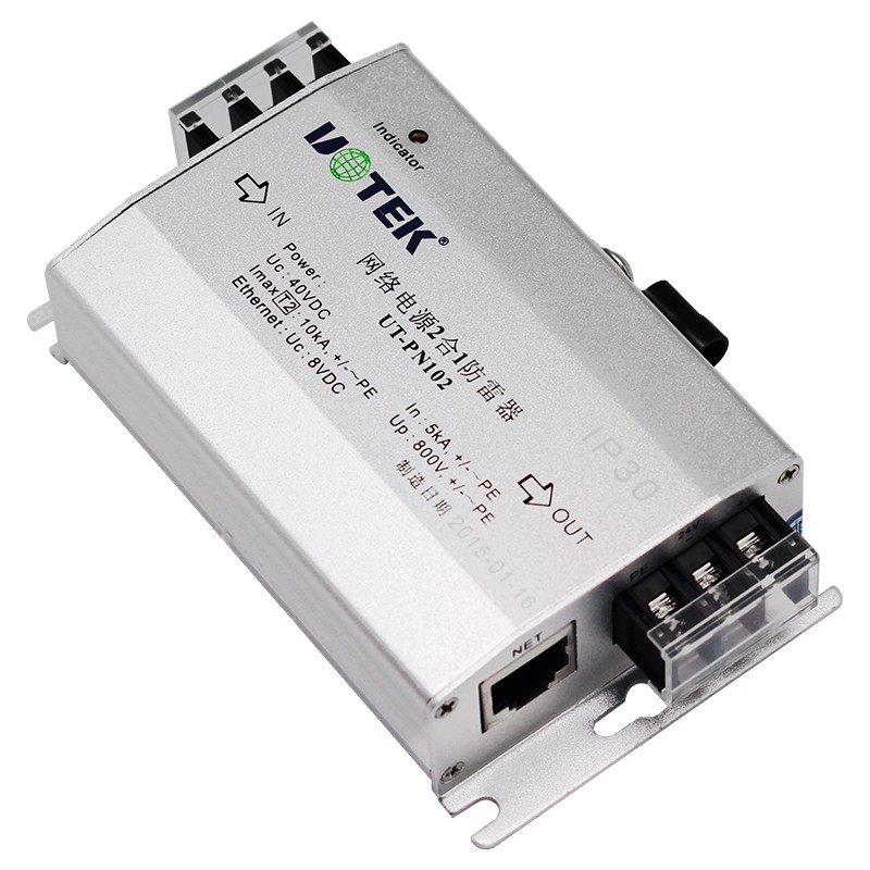 產(chǎn)品名稱:防雷器 產(chǎn)品型號(hào):UT-PN102 信號(hào)接口:網(wǎng)絡(luò)電源二合一