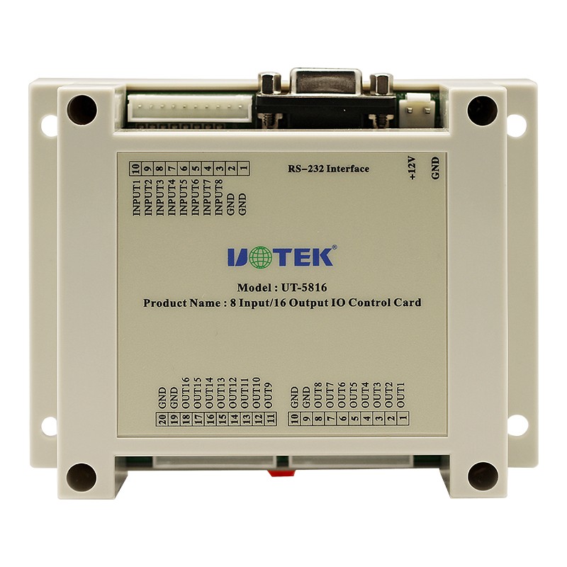 UT-5816是一款8通道干接點輸入,16通道電壓輸出模塊;輸入輸出都有對應的信號指示燈顯示狀態(tài)。工業(yè)級高標準設計,模塊可以通過一系列指令進行遠程控制,模塊和上位機是使用指令數(shù)據(jù)形式通過RS-232進行通訊。通訊波特率采用9600bps。廣泛應用于工業(yè)控制及自動化領域。
